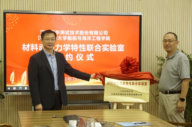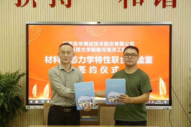 10月16日上午,嘟嘟成人网 与江苏东华测试技术股份有限公司举办“材料动态力学特性联合实验室”合作共建签约仪式。江苏东华测试技术股份有限公司副总经理顾剑峰、区域经理王杰、船海学院院长张健、副院长周效国、工程力学实验室主任沈超明以及部分教师出席签约仪式。