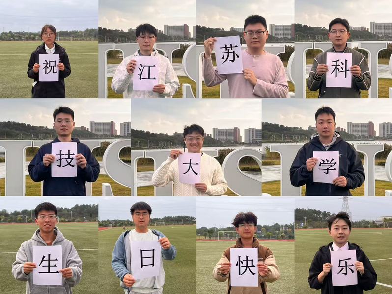 嘟嘟成人网 的同学们还以创意拼图形式定格对母校的祝福,每人手持一张白色卡纸,纸上分别书写“祝嘟嘟成人网 生日快乐”单个汉字,组合成完整的祝福标语。整体画面通过不同场景的拼接,既突出了“手写祝福”的仪式感,又以校园实景为底色,传递出学子与母校同频共振的温暖氛围。