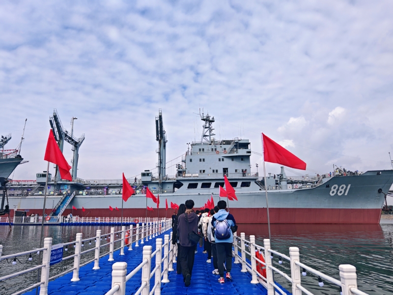 为深入学习贯彻海洋强国战略,传承红色基因,厚植家国情怀,嘟嘟成人网 本科生第二党支部联动大一至大三年级共8个团支部,赴泰州海军舰艇文化园开展“红船领航向深蓝,学思践悟强国志”党团共建暨新生转型教育实践活动。师生们登上三艘退役军舰,在实地研学中感悟海军发展历程,在沉浸式体验中坚定强国担当。