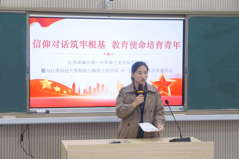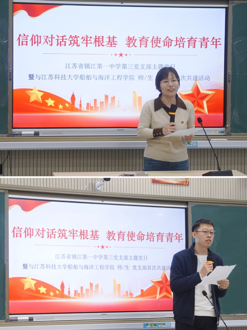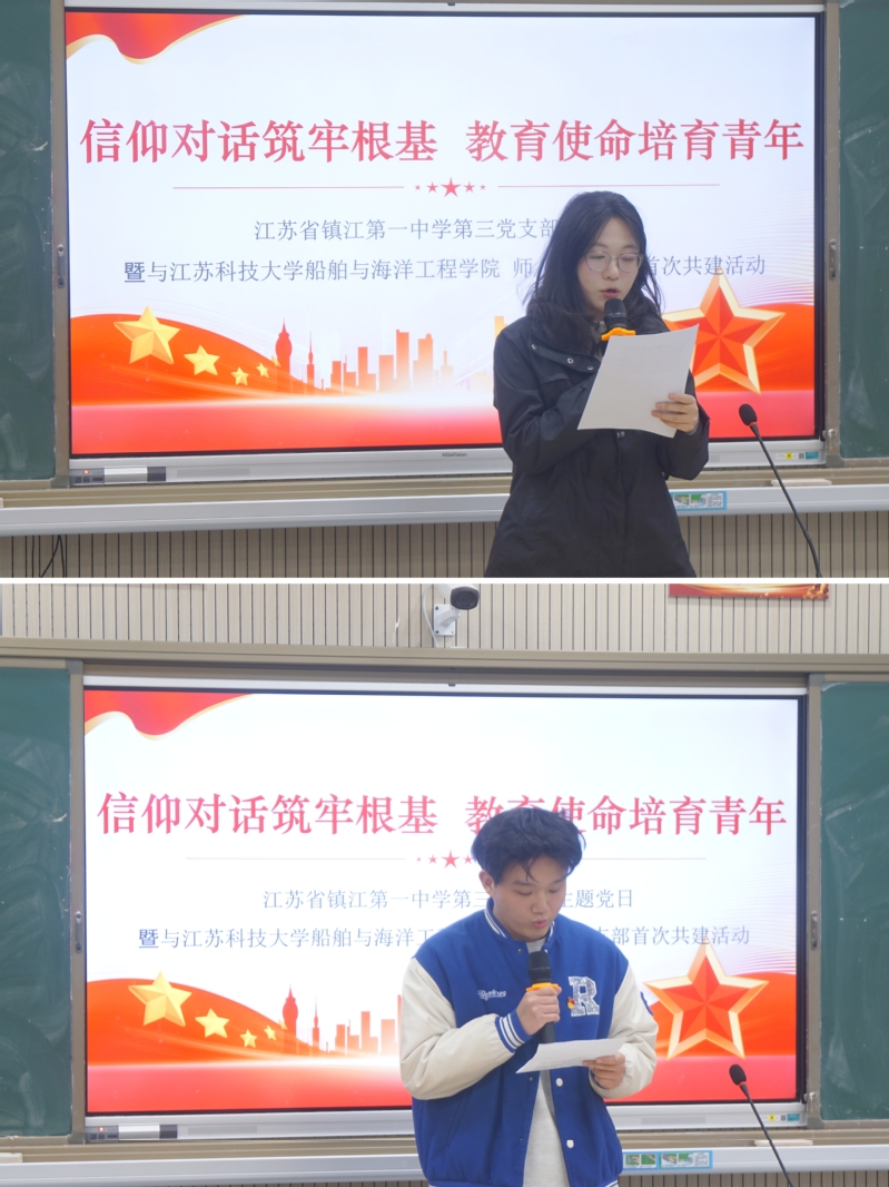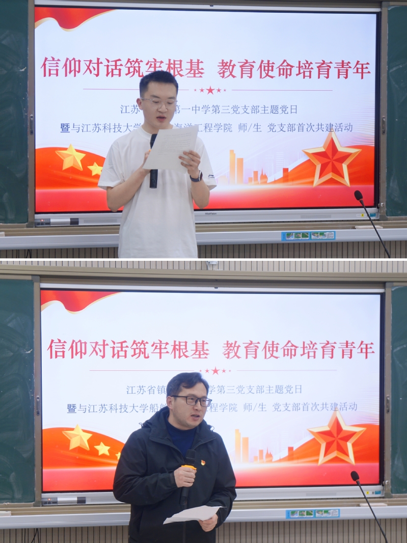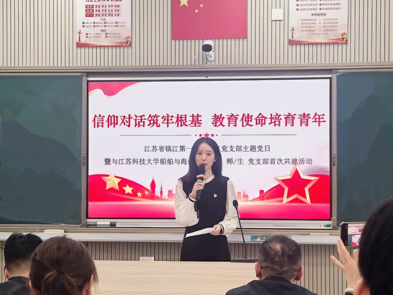 近日,嘟嘟成人网 本科生第二党支部、海洋工程系党支部师生党员前往镇江第一中学,与镇江一中第三党支部教师党员联合开展“信仰对话筑牢根基 教育使命培育青年”主题党日活动。