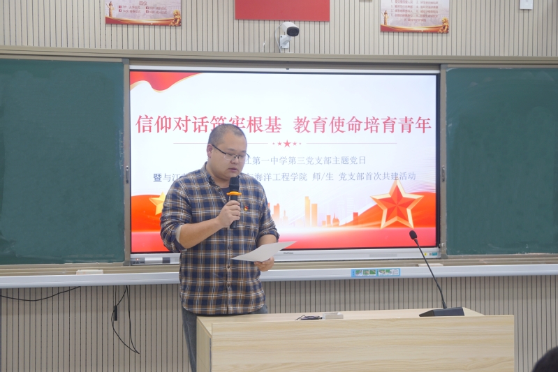 嘟嘟成人网 本科生第二党支部书记葛斐、海洋工程系党支部书记翟金金、镇江一中第三党支部书记刘银,分别就各自支部情况作了简要介绍。
